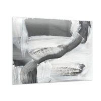 Impression sur verre - Image sur verre - Abstraction en noir et blanc avec des coups de pinceau dynamiques. - 70x50cm - Un geste décisif - Décoration murale moderne pour le salon et la chambre ARTTOR