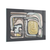 Impression sur verre - Image sur verre - Abstraction géométrique dans des tons terreux sur fond noir - 70x50cm - L'abstraction dans l'esprit précolombien - Décoration murale moderne pour le salon et la chambre ARTTOR