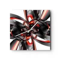 Horloge murale - Pendule murale - Graphiques 3D abstraits avec des éléments noirs et rouges - 30x30cm - Mouvement de graphite et rouge - Décoration murale moderne pour le salon et la chambre ARTTOR