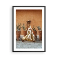 Affiche dans un cadre noir - Poster - Femme élégante portant un chapeau sur fond de cactus - 50x70cm - Style hippie - Décoration murale moderne pour le salon et la chambre ARTTOR