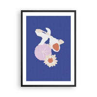 Affiche dans un cadre noir - Poster - Poissons Koi entourés de fleurs sur un fond intense - 50x70cm - Composition de fleurs et de bourgeons - Décoration murale moderne pour le salon et la chambre ARTTOR