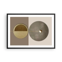 Affiche dans un cadre noir - Poster - Cercles abstraits dans les tons or et beige - 70x50cm - Équilibre parfait - Décoration murale moderne pour le salon et la chambre ARTTOR