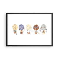 Affiche dans un cadre noir - Poster - Animaux mignons dans des ballons sur fond blanc - 70x50cm - Compagnons de voyage - Décoration murale moderne pour le salon et la chambre ARTTOR
