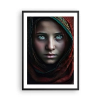 Affiche dans un cadre noir - Poster - Portrait d'une fille dans un châle rouge avec des yeux hypnotisants - 50x70cm - Princesse orientale - Décoration murale moderne pour le salon et la chambre ARTTOR