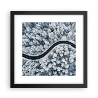 Affiche dans un cadre noir - Poster - À travers une forêt d'hiver - 30x30 cm