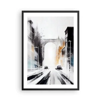 Affiche dans un cadre noir - Poster - Panorama urbain abstrait avec une arche monumentale - 50x70cm - Étude de ville : architecture et mouvement - Décoration murale moderne pour le salon et la chambre ARTTOR