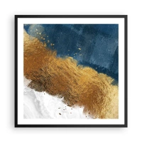 Affiche dans un cadre noir - Poster - Une composition abstraite dans des tons d'or, de bleu et de blanc. - 70x50cm - Les couleurs de l’été - Décoration murale moderne pour le salon et la chambre ARTTOR