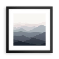 Affiche dans un cadre noir - Poster - Vagues de montagnes - 30x30 cm