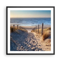 Affiche dans un cadre noir - Poster - Le bruit de la mer, le chant des oiseaux, une plage sauvage parmi les herbes… - 60x60 cm