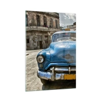 Impression sur verre - Image sur verre - Voiture classique cubaine dans les rues de La Havane - 50x70cm - L'ancien est beau - Décoration murale moderne pour le salon et la chambre ARTTOR