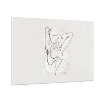 Impression sur verre - Image sur verre - Une silhouette féminine dessinée avec une seule ligne sur un fond clair - 100x70cm - L'art de la séduction - Décoration murale moderne pour le salon et la chambre ARTTOR