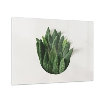 Impression sur verre - Image sur verre - Feuilles vertes disposées en forme de vase sur fond blanc - 100x70cm - Curiosité sans retenue - Décoration murale moderne pour le salon et la chambre ARTTOR