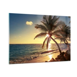 Impression sur verre - Image sur verre - Plage tropicale avec palmiers à la lumière du soleil couchant - 100x70cm - L'été sous les palmiers - Décoration murale moderne pour le salon et la chambre ARTTOR