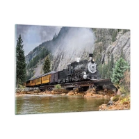 Impression sur verre - Image sur verre - Une locomotive à vapeur sur un pont dans les montagnes - 120x80cm - Et lui jusqu'où? Jusqu'où? - Décoration murale moderne pour le salon et la chambre ARTTOR