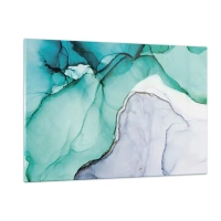 Impression sur verre - Image sur verre - Une peinture abstraite aux tons turquoise et blanc, avec des craquelures délicates. - 120x80cm - Étude de turquoise - Décoration murale moderne pour le salon et la chambre ARTTOR