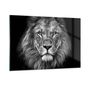 Impression sur verre - Image sur verre - Portrait d'un lion en noir et blanc avec une crinière majestueuse - 120x80cm - En vêtement de sacre - Décoration murale moderne pour le salon et la chambre ARTTOR