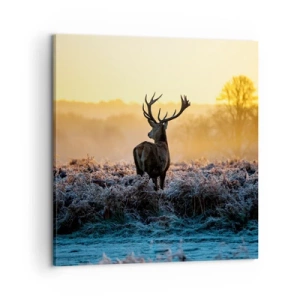 Impression sur toile - Image sur toile - Un cerf dans une clairière gelée au lever du soleil - 70x100cm - Couronné pour sa succession - Décoration murale moderne pour le salon et la chambre ARTTOR