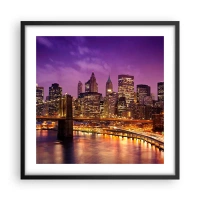 Affiche dans un cadre noir - Poster - Manhathann or violet - 60x60 cm