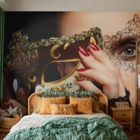 Papier peint sur mesure Premium Sand - Mon monde est baroque - Femme, Masque vénitien, Balle