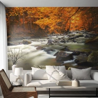 Papier Peint Photo Premium Canvas - Un ruisseau dans une forêt dorée - Paysage, Forêt, Ruisseau de montagne - 350x256 cm