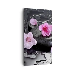 Papier Peint Photo Premium Canvas - Pierres noires et fleurs roses style spa - 100x70cm - Et le cœur s'allège soudainement - Décoration murale moderne pour le salon et la chambre ARTTOR
