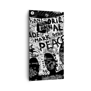 Impression sur verre - Image sur verre - Graphiques en noir et blanc avec des motifs graffitis - 70x100cm - La richesse des rues - Décoration murale moderne pour le salon et la chambre ARTTOR