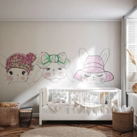 Papier Peint Photo Standard Eco - Délicates illustrations de lapins portant des coiffes ornées - 100x70cm - Pensif, triste, satisfait - Décoration murale moderne pour le salon et la chambre ARTTOR