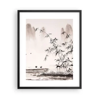 Affiche dans un cadre noir - Poster - Le silence des rizières - 40x50 cm