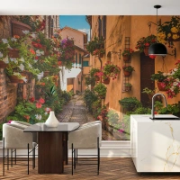 Papier Peint Photo Standard Eco - Ruelle italienne - Ville, Fleurs, Architecture - 250x175 cm