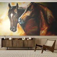 Papier Peint Autocollant Deluxe Sticker - Deux fois plus gracieux - Animaux, Les chevaux, Nature - 350x256 cm