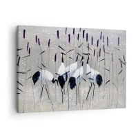 Impression sur toile - Image sur toile - Hérons dans l'herbe sur un fond paisible - 120x80cm - Parmi les siens - Décoration murale moderne pour le salon et la chambre ARTTOR