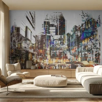 Papier Peint Autocollant Deluxe Sticker - Une ville chatoyante - Ville, Architecture, Graphique - 200x140 cm