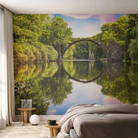 Papier Peint Photo Standard Eco - Un pont de pierre se reflétant dans l'eau, entouré de verdure - 100x70cm - À la jonction de deux mondes - Décoration murale moderne pour le salon et la chambre ARTTOR