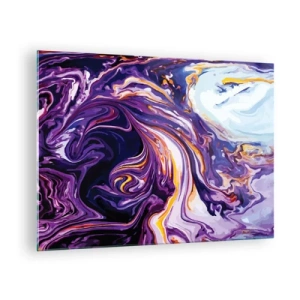 Impression sur verre - Image sur verre - Motif abstrait dans les tons violet et blanc avec des lignes dynamiques - 70x50cm - La courbure de l'espace en violet - Décoration murale moderne pour le salon et la chambre ARTTOR