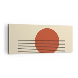 Impression sur toile - Image sur toile - Cercle rouge abstrait avec des lignes sur fond beige. - 160x50cm - Aux alentours et plus loin - Décoration murale moderne pour le salon et la chambre ARTTOR
