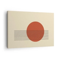 Impression sur toile - Image sur toile - Cercle rouge abstrait avec des lignes sur fond beige. - 70x50cm - Aux alentours et plus loin - Décoration murale moderne pour le salon et la chambre ARTTOR