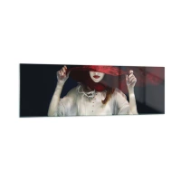 Impression sur verre - Image sur verre - Une femme avec un chapeau rouge immergée dans l'eau - 160x50cm - Femme mystérieuse - Décoration murale moderne pour le salon et la chambre ARTTOR