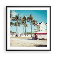 Impression sur toile - Image sur toile - Une plage avec des palmiers et une tour de sauvetage en arrière-plan - 100x70cm - Une belle journée devant toi - Décoration murale moderne pour le salon et la chambre ARTTOR
