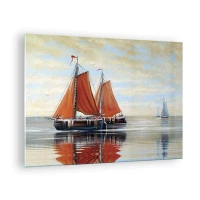 Impression sur verre - Image sur verre - Voiliers sur une mer calme au coucher du soleil - 70x50cm - He, navigue, marin - Décoration murale moderne pour le salon et la chambre ARTTOR