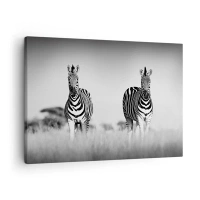 Impression sur toile - Image sur toile - Deux zèbres dans la savane dans un style monochrome - 120x80cm - Le monde est bel et bien noir et blanc - Décoration murale moderne pour le salon et la chambre ARTTOR