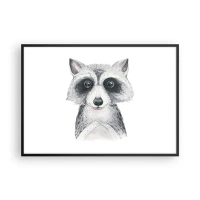 Affiche dans un cadre noir - Poster - Adorable portrait d'un raton laveur sur fond blanc - 100x70cm - Un moment pour s'émouvoir - Décoration murale moderne pour le salon et la chambre ARTTOR