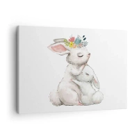 Impression sur toile - Image sur toile - Des lapins mignons aux couleurs pastel - 120x80cm - Maman irremplaçable - Décoration murale moderne pour le salon et la chambre ARTTOR