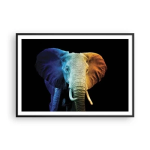 Affiche dans un cadre noir - Poster - Portrait d'éléphant aux couleurs de l'arc-en-ciel - 100x70cm - Excentrique, pas bizarre - Décoration murale moderne pour le salon et la chambre ARTTOR