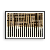 Impression sur verre - Image sur verre - Rayures et lignes géométriques dans des tons de noir et d'or - 100x70cm - Abstraction architecturale - Décoration murale moderne pour le salon et la chambre ARTTOR