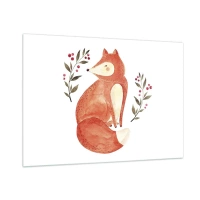 Impression sur verre - Image sur verre - Adorable renard aquarelle avec des brindilles et des baies - 100x70cm - Petit rouquin - Décoration murale moderne pour le salon et la chambre ARTTOR