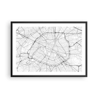 Affiche dans un cadre noir - Poster - Plan de ville minimaliste en noir et blanc - 70x50cm - Fleur de Paris - Décoration murale moderne pour le salon et la chambre ARTTOR