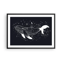 Affiche dans un cadre noir - Poster - Une illustration graphique d'une baleine dans un style de l'ère spatiale. - 70x50cm - Dans l'océan de l'univers - Décoration murale moderne pour le salon et la chambre ARTTOR