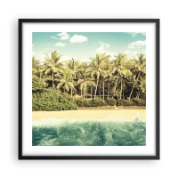 Impression sur toile - Image sur toile - Plage tropicale avec palmiers et mer turquoise - 100x70cm - Peut-être ici? - Décoration murale moderne pour le salon et la chambre ARTTOR