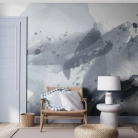 Papier Peint Photo Standard Eco - Éclaboussures d'aquarelle abstraites bleu-gris ressemblant à de l'eau - 100x70cm - Étude de la nature de l'eau - Décoration murale moderne pour le salon et la chambre ARTTOR