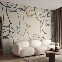 Papier Peint Photo Standard Eco - Contours dessinés avec une seule ligne - 100x70cm - Portrait multiplié - Décoration murale moderne pour le salon et la chambre ARTTOR